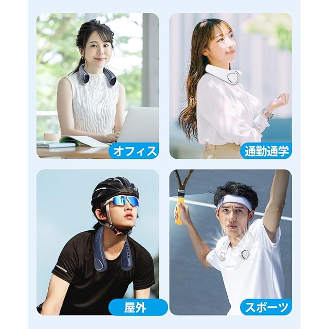 【70枚ファンブレード × 静音設計】70枚の独自設計ファンブレードを搭載した USB充電式 扇風機 。空気の流れを均一化し、ムラのない心地よい風を送り出します。 静音 設計により、図書館やオフィス、夜間でも快適に使用可能。どこでも使用できる 携帯型 ネッククーラー として、静かな涼しさを提供します。