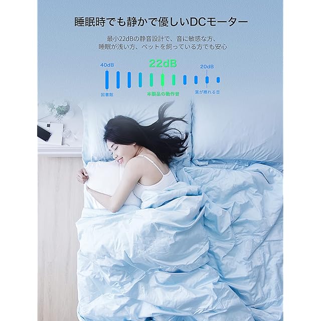 【22dB完全静音技術・DCモーター】従来のサーキュレーター&リビング扇風機の音デシベルは35-60dBで、Epeiosサーキュレーターの最小動作音は22dBという限りなく小さい運転音に抑えられています。高性能、省電力で使えるDCモーターを採用して、空気と電機と扇の葉の間の摩擦を低減し、騒音を大幅に低減し、本格的な静音リビング扇風機を実現しました、理想的な室内環境と睡眠を作り。敏感な人や睡眠が浅い人にも最適です。