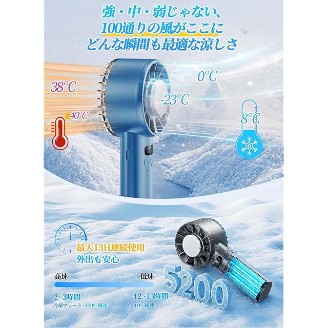 【5200mAh超大容量・長時間駆動を実現】 内蔵された5200mAh高性能リチウムバッテリーにより、最大約13時間の連続使用が可能。一度充電すれば外出中でもバッテリー切れの心配がなく、丸一日涼しく快適な時間を過ごせます。USB充電式でいつでもどこでも気軽に充電可能、出張や旅行の必携アイテムとしても活躍します。