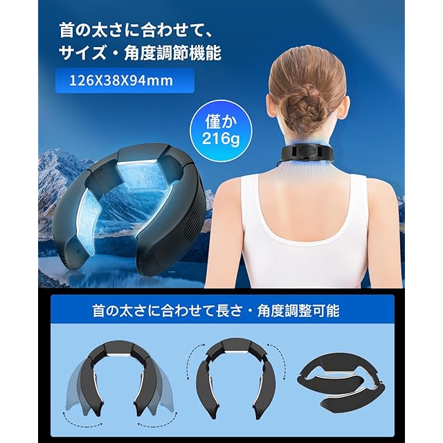 【首周りサイズ調整可・折り畳み式・静音設計】首周りサイズと角度を調整でき、女性から大柄な男性まで幅フィット仕様となっています。首周りサイズは最小約350mm、最大約450mmです。お好みのサイズを自由に調整いただけます。 また軽量で折りたたみ式設計で、コンパクトで収納しやすく、携帯性に優れているのでカバンなどに入れて持ち運び便利です。冷却プレートを採用しており、髪が引っ掛かったり、異物を挟み込んだりする事はご心配ありません。ご安全安心でこの首冷却クーラーをご利用いただけます。静音設計であるため、オフィスや図書館など、静かな場所でも使用可能です。