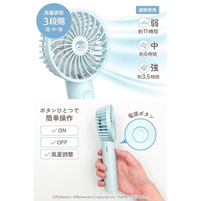 充電時間・連続使用時間:約4時間・連続使用時間最大約11時間(風量弱時)※風量は3段階調整可能