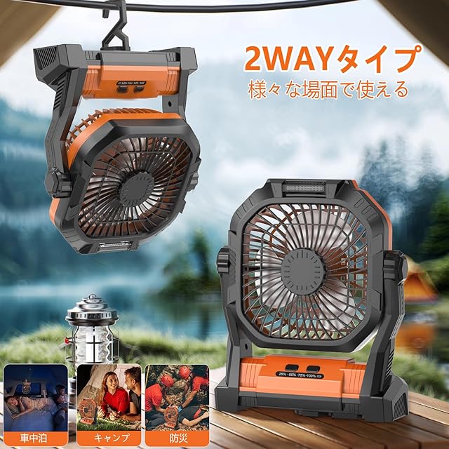 【4段階風量調節可能・モバイルバッテリーとして】キャンプ 扇風機の風力は4段階で切り替え可能。使用時はお好みに合わせて自由に風量を調節できます。また、 このキャンプ 扇風機はUSB出力充電ポートを搭載しており、電力を消費している携帯電話やガジェットに簡単に電力を供給することができます。緊急停電時のキャンプ用品として最適です。