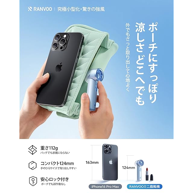 【驚くべき涼しさ!10m/sの強風で瞬時にクールダウン】RANVOO手持ち扇風機は、最大10m/sのパワフルな風量と、100段階の細かな風量調節を搭載。シーンに合わせて最適な風を選べるので、心地よい涼しさを自由にコントロールできます。ハンディ扇風機として、電車や混雑した街中でも自分だけの快適空間を作り出し、冷風を提供します。コンパクトで持ち運びやすいミニ扇風機として、外出先でもすぐにクールダウンできるため、夏の暑さ対策に最適です。
