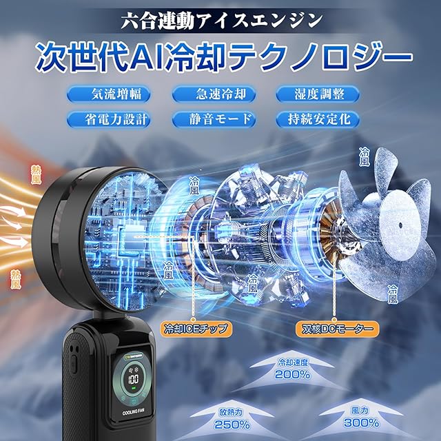 【2025夏新登場・ 瞬間-20℃まで冷却】BNKLRTOU冷却ハンディファン はドイツのTEC超伝導冷却ICEチップ が採用している2025年新しく登場した「冷却プレートつき扇風機」は、冷却力99.7%向上させました。ひんやりした冷感を楽しめるアイテム。冷却プレートとはファンの中心部にある金属プレートのことで、顔や首筋、手首などに当てることで瞬間的な涼しさを実感できます。これは、伝統的なアルミ材の放熱シートよりも 4 倍も高い性能です!40℃以上の高温の野外でも、。強力な送風を組み合わせて、屋外でも十分涼しさを感じられるでしょう。夏の暑い日を快適に過ごすには最適なアイテムです。