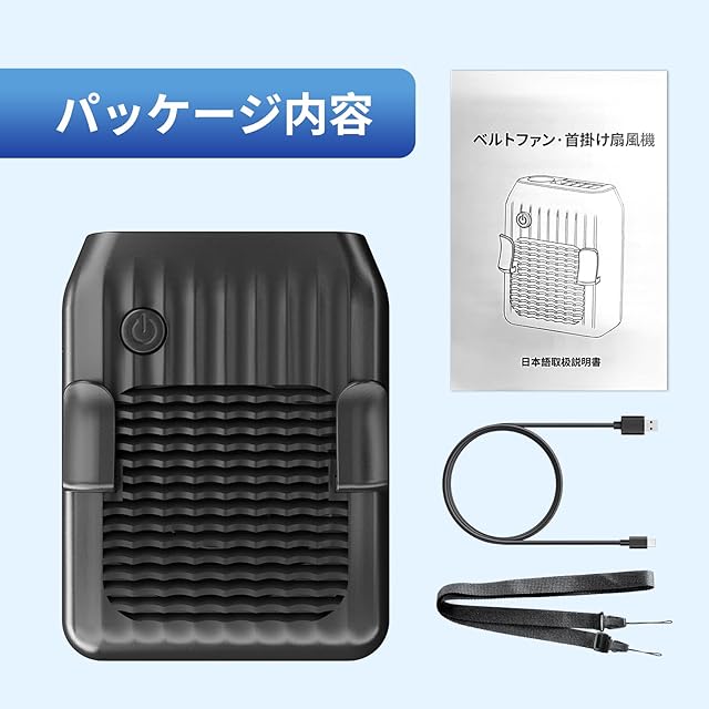 【パッケージ内容&1年メーカー保証】ベルトファン本体×1、ストラップ×1、Usb充電ケーブル×1、日本語取扱説明書(保証書)×1。ご不明な点がございましたら、いつでもご問い合わせください、当社は24時間以内に必ず満足な解決策を提供いたします。