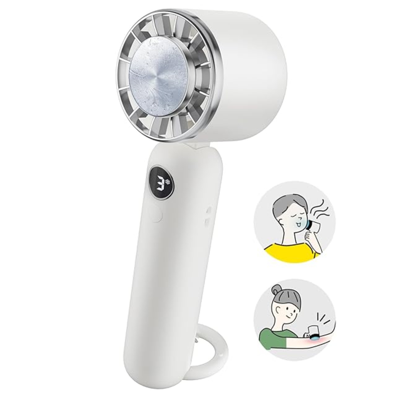 【2025新登場 瞬間冷却ハンディファン】ペルチェ式の冷却プレートを備えた小型扇風機で、ボタンを長押しすると、冷却プレートがわずか数秒で約10℃まで冷却されます。首の大きく太い血管に近づけることで、迅速に体を冷やし、送風によって真夏の暑い日でも涼しさと清涼感を提供します。