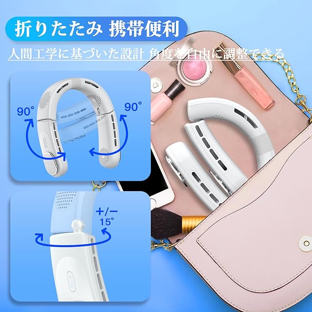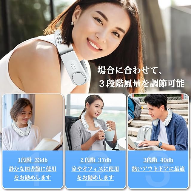 【静音扇風機】首掛け扇風機,遠心スクリューモーターと両面72ブレード設計を採用し、風力を2倍にし、騒音を半減させます。くびかけ扇風機, ワンボタン瞬時パワーオン、3つのギアが周期的に調整され、瞬時に冷却感をもたらします。持ち運びに便利なホルターネックファンで、出張や旅行に最適です。