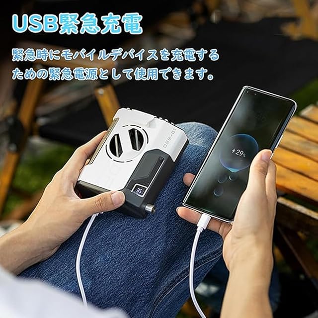 多機能な USB 充電!2 機能を 1 台で実現】扇風機は USB 充電方式を採用しており、充電器やパソコンなどから簡単に充電できます。自身の充電だけでなく、Type-C 入力ポートを備えており、スマートフォンなどのデジタル機器にも逆給電が可能です。扇風機とモバイルバッテリーの 2 つの機能を 1 台に兼ね備えており、使い勝手が格段に向上しています。