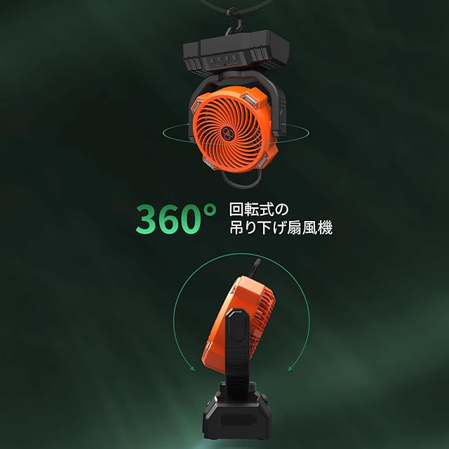 広範囲な調整機能:左右に90°の自動首振り機能と、上下に360°手動で調整可能な角度設定で、広範囲に涼しさを提供します。顶部と底部には吊り下げ用のフックも装備されています。
