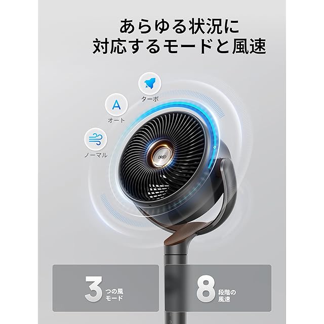 【風量8段階調節&120°左右自動首振&120°上下手動】風量は3つの風モード、8段階と細かく設定できるので、日中・就寝時などシーンに合わせた心地よい風で快適に過ごせます。本製品は左右首振り120°、上下手動角度調整り120°、広範囲に効率よく風を届けます、空気循環・部屋干し効率を最大限に高めることができます、より良い空気循環効果を実現。夏に家族で涼む以外にもエアコンと併用して空気の循環に使ったり、梅雨時期の室内干しにサーキュレーターとして使ったりなど、いろいろな使い方ができます。