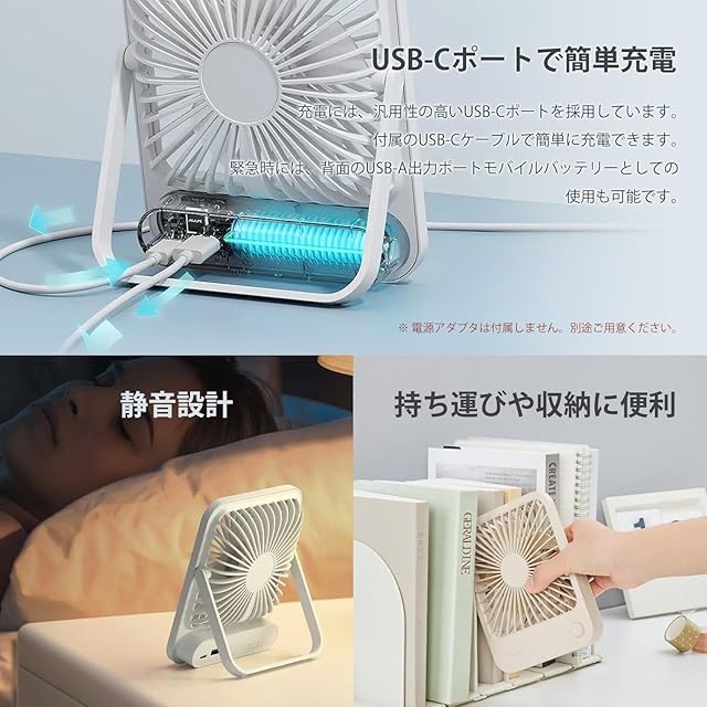 【約6時間連続使用可能 2000mAh大容量バッテリー搭載】2000mAhの大容量バッテリー搭載で、1回満充電すると弱風で約14時間の連続運転が可能です。