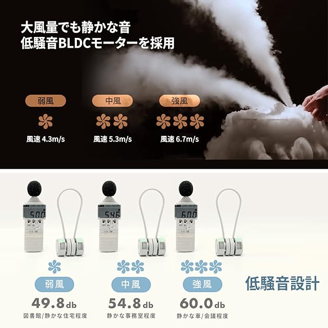 【充電時間】約3時間【使用時間】弱:約6.5時間/中:約3.5時間/強:約2時間