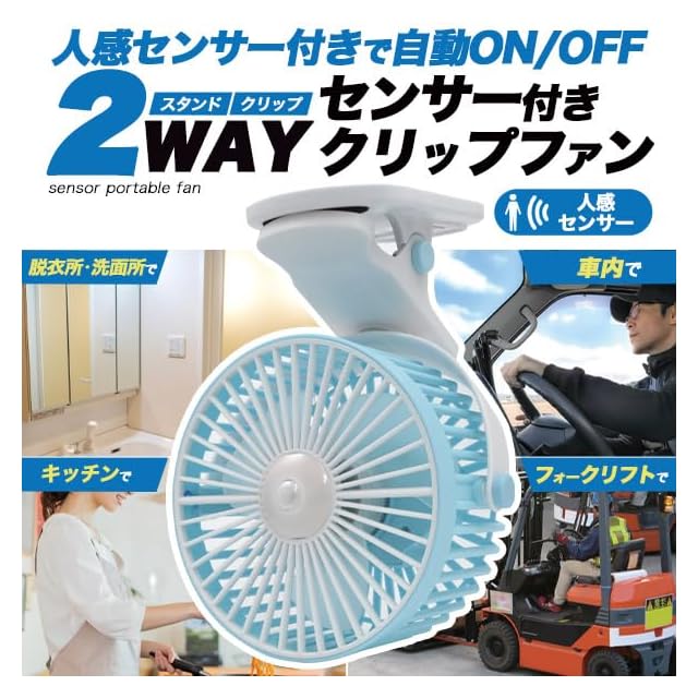 [PLATA] USB扇風機 クリップ スタンド 2WAY 卓上扇風機 人感センサー付き 充電式 3段階 風量 360度 回転 キャンプ 脱衣所 車内 【 ブルー 】