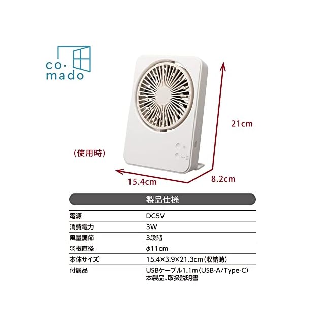 コンパクトで前ガードが外せて、お手入れ簡単。風量3段階、角度2段階。