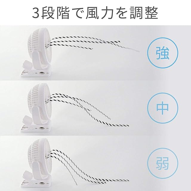 強・中・弱の3段階の風量調整が可能で、お好みに応じて調整が可能です。静音仕様の為、オフィスでも周りを気にせず使用できます。