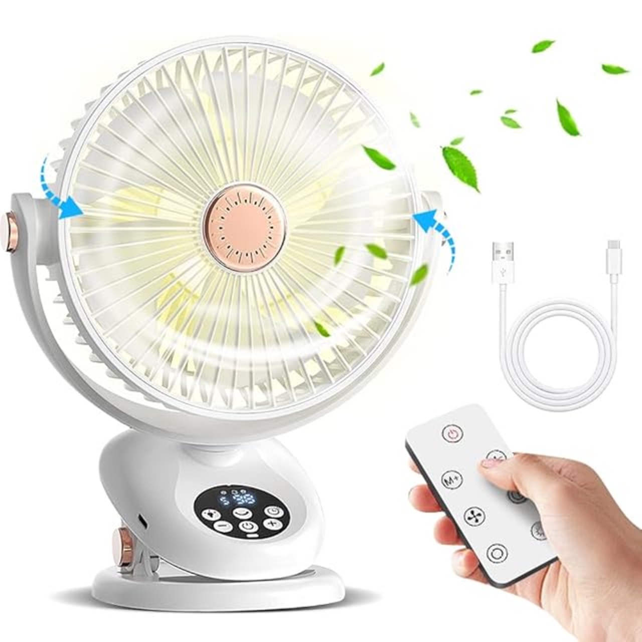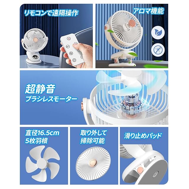 卓上扇風機 自動首振り クリップ扇風機 タイマー LEDライト付き 風量5段階調節 LCD残量・風量段階表示 リモコン アロマ対応 扇風機 壁掛け扇風機 せんぷうき 扇風機 静音 ファン 扇風機 小型 usbファン 強力 Type-C充電式 4000mAh 充電しながら使用可能 5枚羽根 お手入れ簡単 直径16.5cm