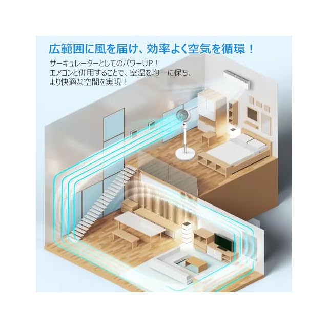 サーキュレーター DCモーター【2025革新強化版 静音強風 猛暑対策】扇風機 兼用 風量6段階調節 12時間タイマー付き 静音 せんぷうき 360度全自動首振り リモコン付き さーきゅれーたー 省エネ 高さ調整可能 パワフル送風 暑さ対策 冷暖房 換気/空気循環/部屋干し 梅雨 除湿 衣類乾燥 組み立て簡単