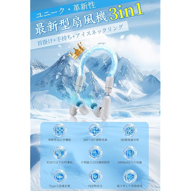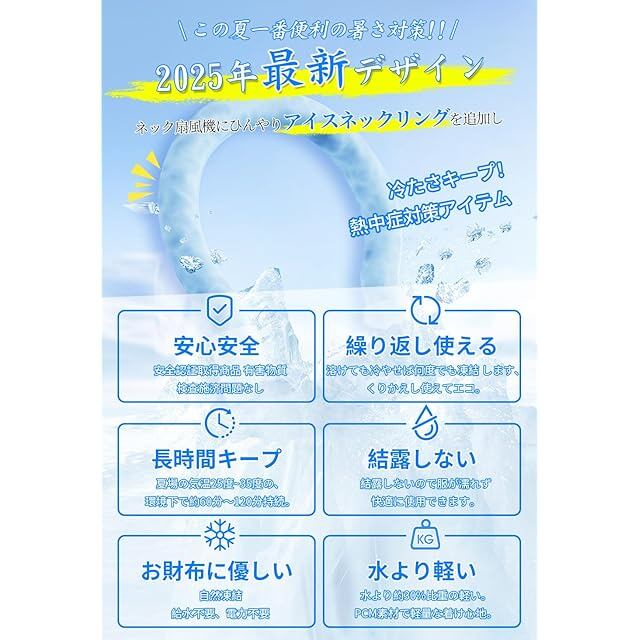 【2025年最新!2in1独占製品】ネッククーラー 首掛け扇風機 アイスネックリング 携帯扇風機 ネックファン 冷却 3段階風量調整 28℃自然凍結 冷感 大容量バッテリー 片側最大13時間連続使用 静音 Type-C充電 熱中症対策 アイスリング ネックリング ひんやりグッズ 暑さ対策 繰り返し使用可能 スポーツ観戦/遠足/アウトドア/山登り/工事現場/通勤通学/釣り