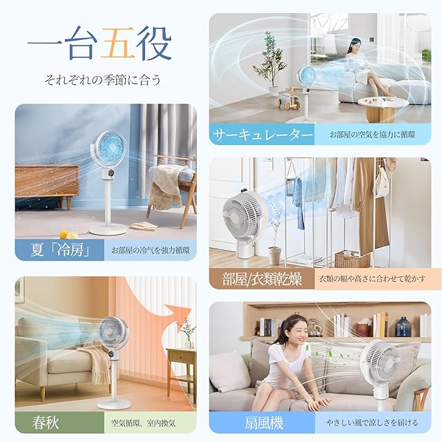 【1台4役、自在な高さ調整】この多機能サーキュレーターはあらゆるシーンで活躍。36cm、52cm、68cm、86cmの3段階高さ調整が簡単で、部屋や用途に柔軟対応。冷房時は低くセットして床付近の冷気を攪拌、暖房時は高くして天井付近の暖気を拡散することで、それぞれ冷気・暖気を効率的に循環させ、室内を快適な温度に保ちます。汎用性高く一年中使え、空気循環改善で快適性と省エネ両立。シンプル操作で生活の質を向上。ぜひ導入して快適な毎日を始めましょう。