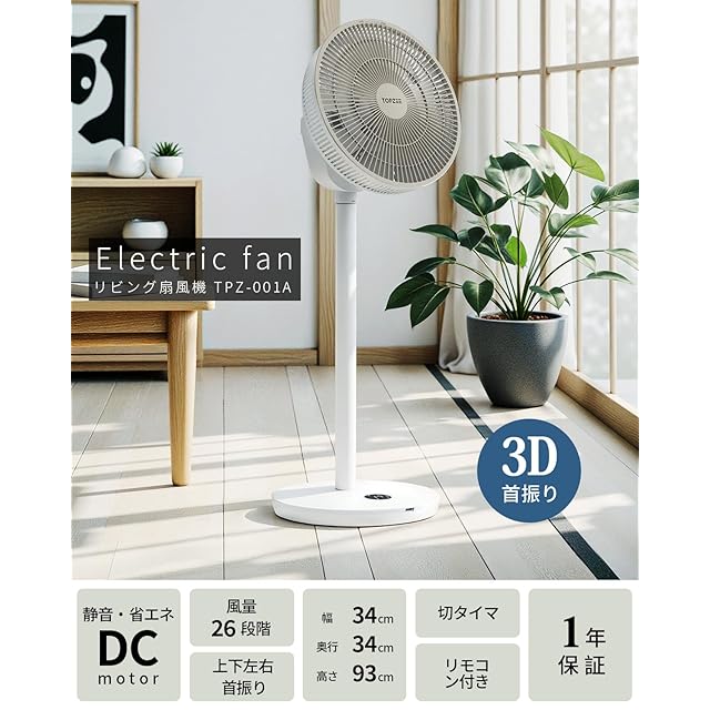 TOPZEE扇風機は、DCモーター搭載で28dB以下の超静音設計ながら、26段階の風量調節が可能な高性能モデル。360°+105°の広角度首振り機能でリビング全体に快適な風を届け、12時間タイマーで就寝中の消し忘れも安心。お手入れ簡単、季節を問わず収納に便利。省エネ性能に優れたDCモーターと洗練されたデザインが、現代のライフスタイルにぴったりな一台です。
