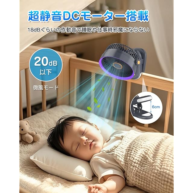 【超静音DCモーター&LED照明機能搭載】高品質dcモーターを採用、4枚羽根で強力な風量を確保しつつ、弱モードではモーターの回転音が全然気にならない超静音設計です。微風、弱風モードでクーラより静か、20dB以下超静音、職場や図書館でも使える、一晩中安眠できます!且つ、LEDナイトライトが搭載、夜は暗い場所をライトで照らし、明かりのない場所で作業をする時などにとても便利です。優れた素材のABS樹脂を採用し、細密な防護カバーの安全設計のため、小さい指さえ挿入不可能です。事故・ケガなどを回避することができます。