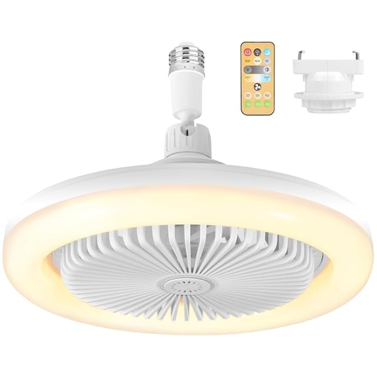 Alcides 【省エネ・小型】シーリングファンライト シーリングファン ファン付き照明 30W 2000lm 無階段調色/調光 3階段風量選択 軽量 6畳 8畳 小型 空気循環 タイマー機能 角度調整 ソケット式/引掛け式 洗面所 物置き トイレ 玄関 廊下 クローゼット (リモコン付き・角型引掛けソケット付き) ホワイト