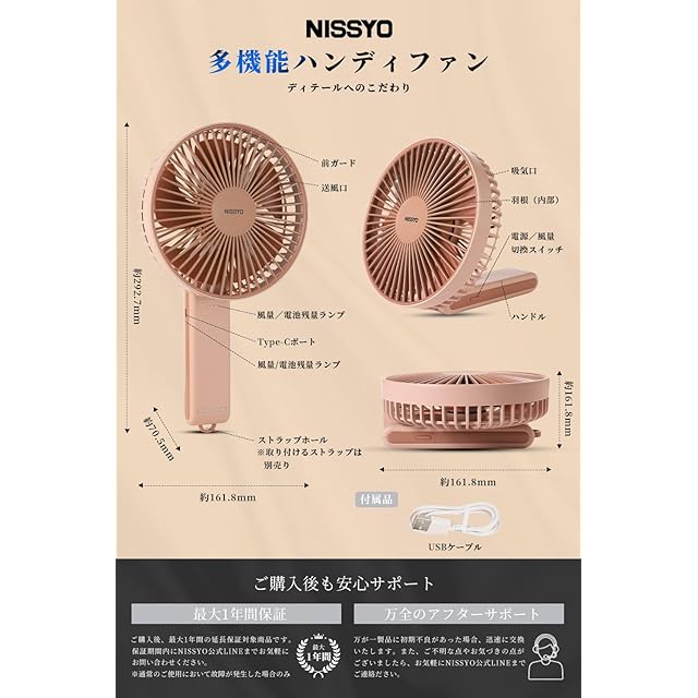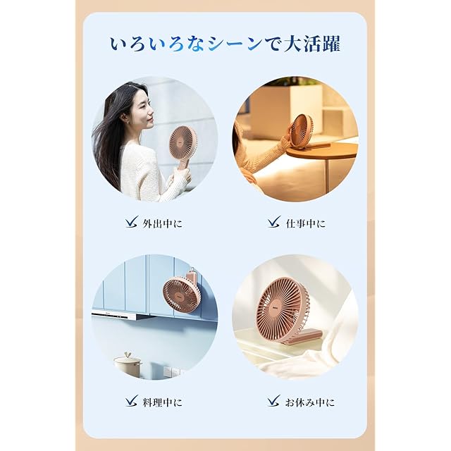 【4段風速調節の強力 ハンディファン】NISSYOの最新携帯扇風機は、弱風から強風まで4段階の風速調節が可能で、デスクワーク中はソフトな風量、リビングではパワフルな風量と使い分け自由。25dBの超静音モードは図書館レベルの静けさを実現し、就寝時や集中作業時にも邪魔になりません。さらに、弊社は5枚ブレードの手持ち扇風機は特殊形状が乱気流を抑制し、肌に優しいなめらかな風を提供します。