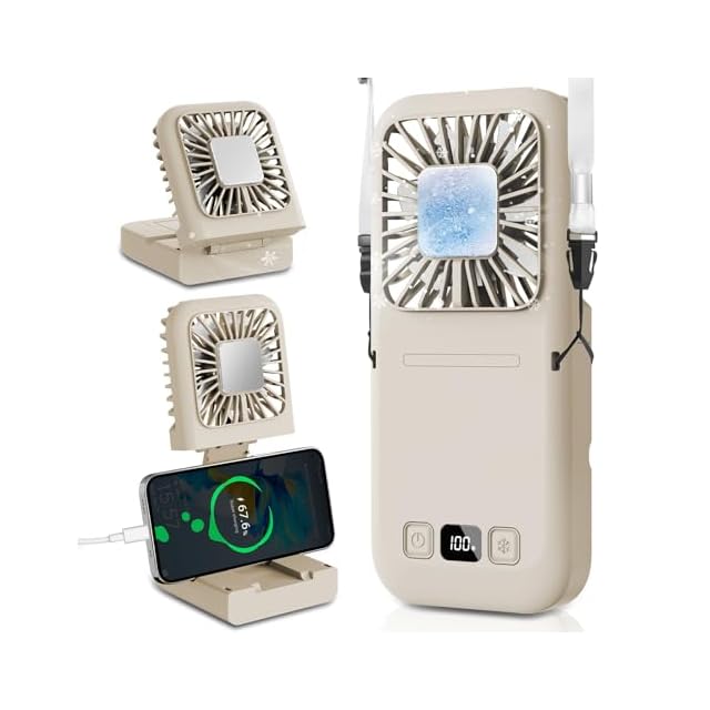 【よりコンパクトで持ち運びに便利&実用性抜群な「モバイルバッテリー」機能】約20mmの薄型ボディなら、小さなバッグやポケットにもすっぽり収まって携帯性抜群!コンパクトに2つ折りできるハンディファンなので、使用しない時は、引き出しや棚などの僅かなスペースに収納可能です。スマホより軽い約208g。長時間首にかけたり手で持って使用しても負担になりにくいです。さらに6000mAhのバッテリーとしてスマホの充電ができる!夏のレジャーは、キャンプや花火、海水浴など長時間のお出かけ時は電源の確保ができモバイルバッテリーとしても使えます。