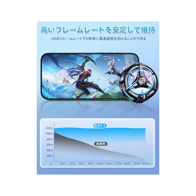 【AI知能温控&急速冷却】このスマホクーラーは2025年新アップグレード版のペルチェ素子半導体冷凍チップを採用し、高速ターボファンと組み合わせることで二重効果の冷却を実現しています。先進的なAI知能技術を採用し、温度を自動的に監視および調整し、デバイスが常に最適な温度で動作するようにしています。 USB電源に接続するだけで、電源投入後約5秒で急速冷却します。過熱によるフレームレートの変動やタッチ遅延の問題を効果的に防止します。人気ゲームタイトル(原神/ワイルドアクション)のフレームレートと最高画質を簡単に維持できます。ゲーム画質、4K ビデオ編集、5Gネットワークライブなど、デバイスが安定して動作し続けることを保証できます。