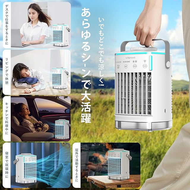 【VIdoboleコスパ抜群の冷風機】VIdobole冷風機は、ミストと強力な送風によって体感温度を素早く下げ、全身を心地よく冷やしてくれるプロ仕様の冷却技術を採用。仕事帰りや旅行から戻った瞬間、スイッチを入れれば、心地よい冷風がすぐに身体を包み込みます。わずか7Wの省電力設計で、エアコンいらずの涼しさを実現。しかもコンパクトで携帯にも便利なため、どんなシーンでも大活躍。いつでもどこでも持ち運んで快適な涼しさをお楽しみいただけます。