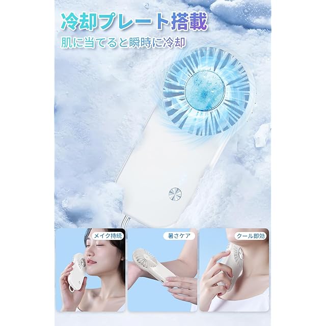 【冷却機能冷感扇風機】ハンディファン 冷却プレートを備えた携帯扇風機で、単なる送風だけでなく、送風中に冷却スイッチを押すことでプレートが急速に冷たくなります。冷却プレートを頬、おでこ、手首、首元などに当てると、ひんやりとした冷感が感じられ、お肌が即座にクールダウン。猛暑の中でも氷のような冷たさを体験でき、お肌の温度を外気温から最大20℃冷却し、火照った顔に涼しさをもたらします。熱中症対策に最適な携帯扇風機です。