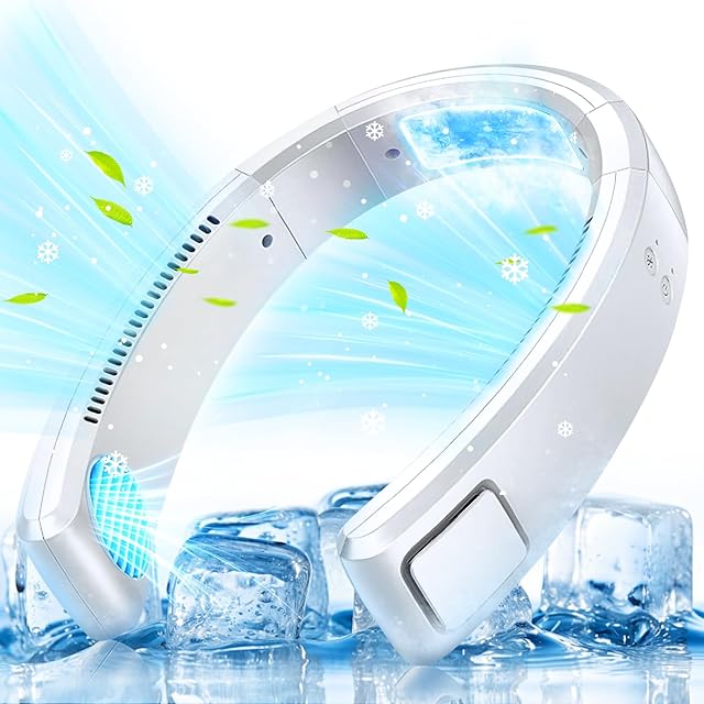 両手を使わずに心地よい風を顔に当てられる:このネックファンは首にかけて顔まわりに心地よい風を楽しながら両手が自由に使えて便利です。またMAX5500rmpのデュアルコア高速モーター設計を採用、上下80ケ送風口から強力に顔周辺や背中の上下方向から同時に強く巻き出されます。従来の首かけ扇風機と違い回転羽根がないので髪の毛や指が巻き込まれる心配はなくお子供、高齢者様にも安心してお使いいただけます。
