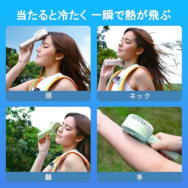 【3WAY使いやすい】手持ち扇風機、首掛け扇風機、卓上扇風機として使えます。120°調整可能なヘッドで、自分の好みに合わせた角度調整も可能。手持ち、首掛け、卓上の3通りの使い方ができ、シーンに合わせて便利に活用できます。
