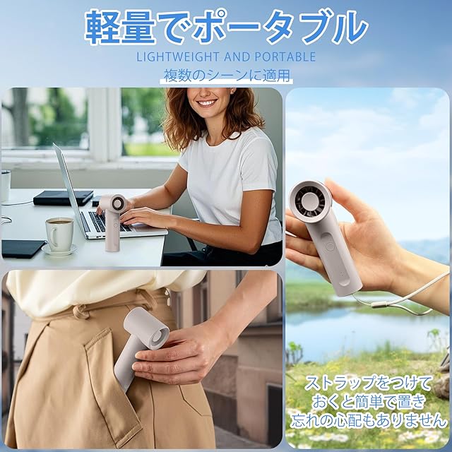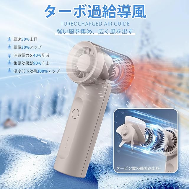 【新しいテクノロジー・ターボ気流携帯扇風機】このハンディファン、空気の流れが加速および圧縮されの最新技術を採用しています。風がより強くなり、より自然な感じになります。 肌にひんやりとした心地よい感触を与えます。暑さを吹き飛ばす良きパートナーとして、 暑い夏を快適に過ごしましょう! 真夏の熱中症対策に最適なハンディファンです。