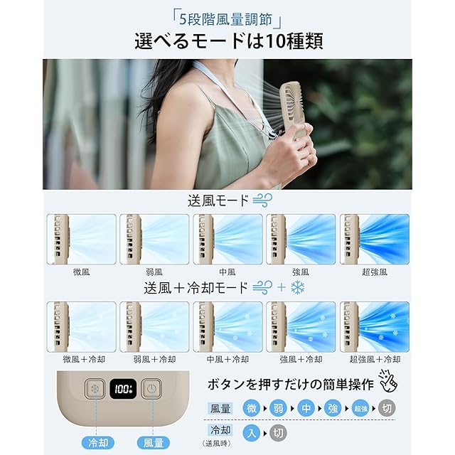 【DCモーター採用で静音&安全設計】ハンディファンは7枚羽とDCモーターの組み合わせでコンパクトなのにしっかりと涼しさを感じられるパワフルな風を送るとともに、回転音の静かさを実現。3・5枚羽扇風機と比べて風のムラを大幅に減らして心地よい自然風を再現できており、静音性にも優れているのが魅力です。ファンに触れないようカバーは目が細かいので指が入りにくいです。優れたABS樹脂で作られているので、対衝撃性に強く紫外線に対して変形しにくく耐久性を持っています。【セット内容】ハンディ扇風機本体、ネックストラップ、タイプCケーブル、日本語取扱説明書。