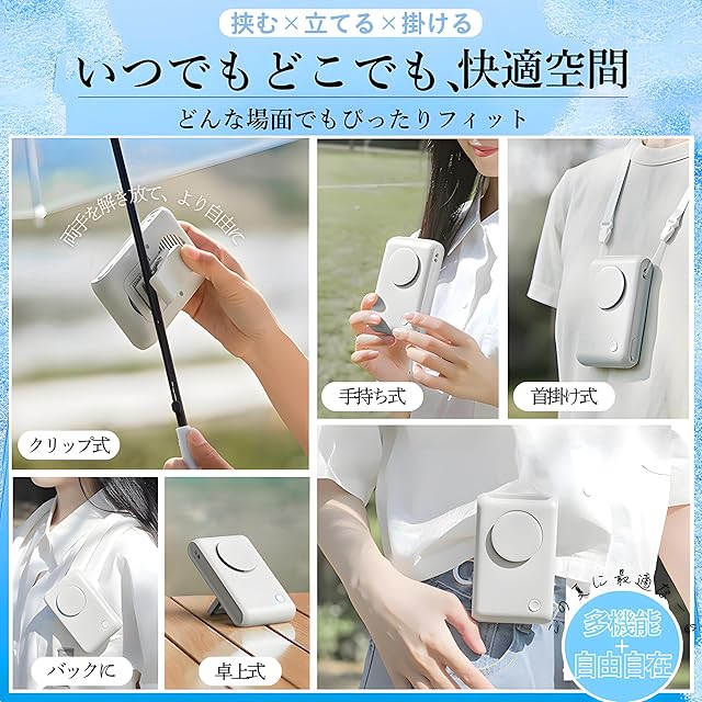 【これ1台で、使い方は無限大】 ●首から下げて両手フリー ●バッグや襟元にクリップで固定 ●スタンドを出して卓上ファンに ●キッチンでの調理中にも便利 ●車内やデスク周りにもぴったり その日の服装や環境に合わせて、気分を変えてくれる“自由な相棒”のような存在です。