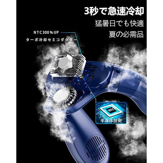 ❄【最強 ネッククーラー.3秒高速クールダウン】2025 首掛け扇風機 業界初!革命的に向上された最強 ネッククーラー発売!搭載NTC半導体冷却技術,超大型冷却面積 ネッククーラー 冷却プレート, 720°上下出風型,3秒高速クールダウン,風を首や顔に当てられながら、首回りを立体的に冷却します。