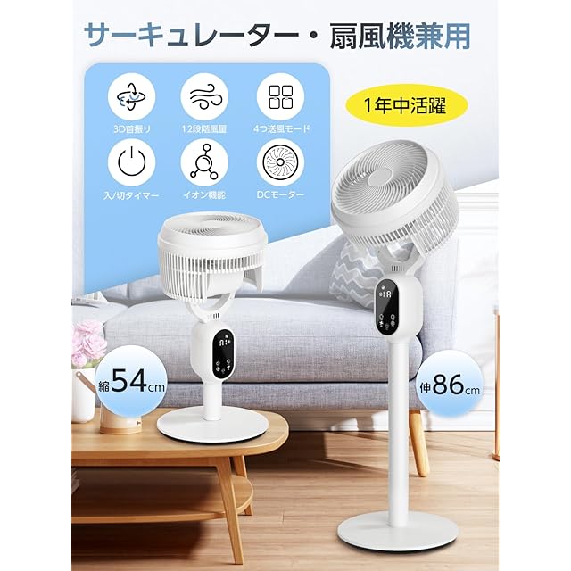 【一年中使えるサーキュレーター・360度首振り】季節の変わり目に合わせて、様々な使い方ができるサーキュレーターです。夏には風を送り、冬には暖房器具と組み合わせて部屋全体を暖かくします。初春や梅雨の季節には、換気や衣類の乾燥、部屋干し、空気の循環など、さまざまな用途に対応します。また、上下や左右に90度首振りするだけでなく、3D回転(上下左右同時)も可能です。風の流れが立体的になり、全方向に広がるため、より効果的な空気循環がを実現します。