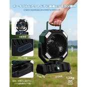 【高輝度LEDライト&360°耐荷重フック】このキャンプ扇風機には、高輝度LEDライトを搭載します。均一な光配分で目に優しく、3段階調光機能を備えています。ファンの底部には360°回転可能な耐荷重フックが付いています。テントに簡単に吊るすことができます。卓上扇風機として使用する場合、底面の滑り止めパッドは安定性も確保されます。停電時や緊急避難、アウトドアとしても大活躍!