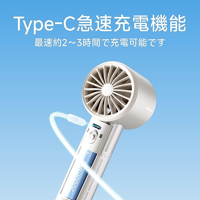 5000mAh大容量バッテリー:長時間の使用可能のため、JISULIFE携帯扇風機には5000mAhの大容量バッテリーを搭載しています。18Wの急速充電に対応しており、電源OFF時なら2~3時間でフル充電可能。お出かけ前の短時間でもさっと充電できます。素早く携帯扇風機の充電を完了させ、操作にかかるストレスを軽減し、快適なユーザー体験を実現します。