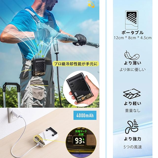 【LEDデジタルディスプレイ】残量バッテリー・風速モード・運転時間をリアルタイム表示。製品材質:ABS+PBT+電子部品+マンガン鋼。この夏、熱中症知らずのアクティブライフを手に入れよう!