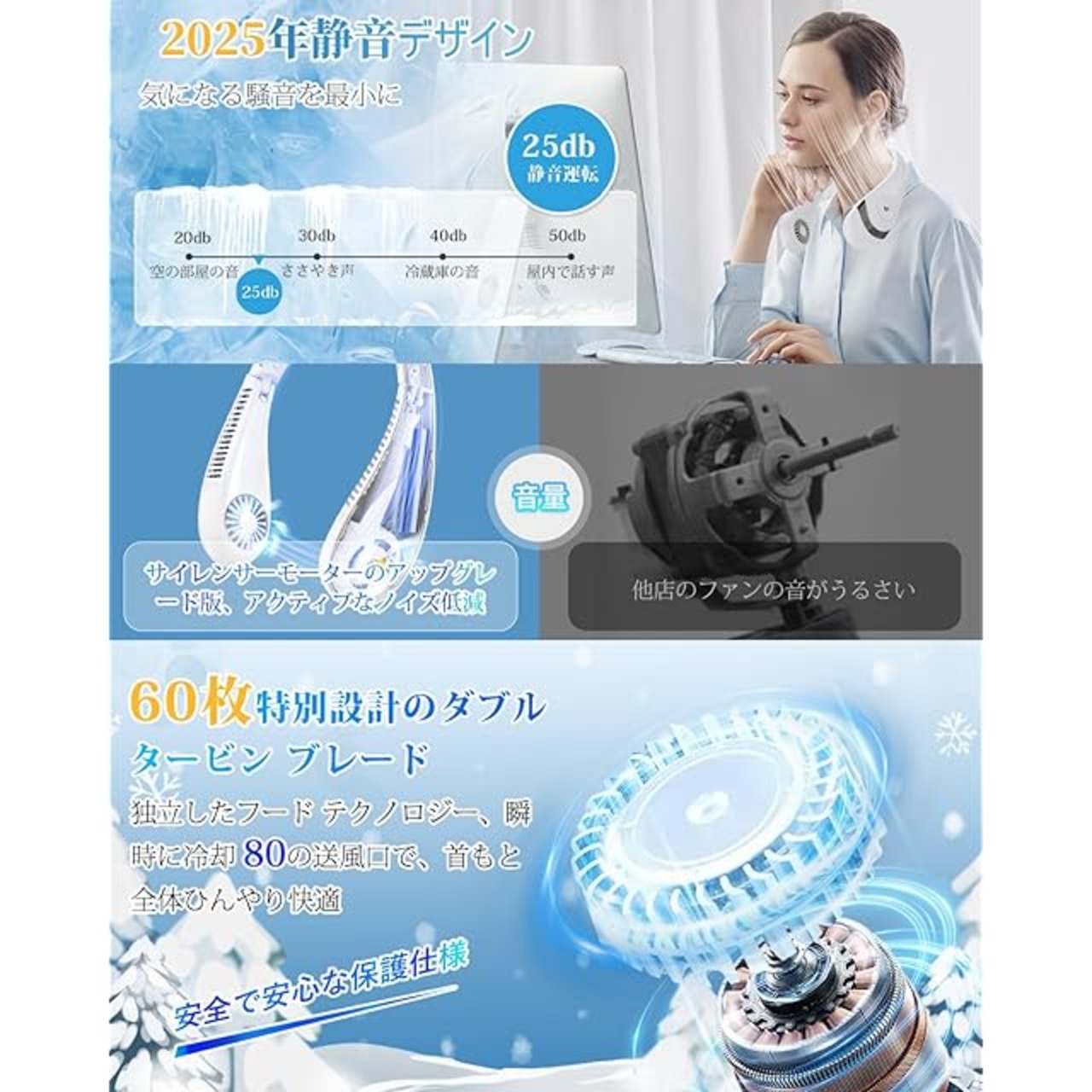 【2025革新版·夏のネックファン】Oldstar 2025新しいバージョンのパーソナルネックファンは、気流と騒音をアップグレードしました。パーソナルネックファンの重量は約245gで、超軽量です。首の負担が少ない。あなたが歩いている間、あなたはきっとあなたの首にファンを掛けることを好む、髪がファンの刃に巻き込まれることを心配する必要はありません。60のファンブレードが風を密に集め、風が強くなります。