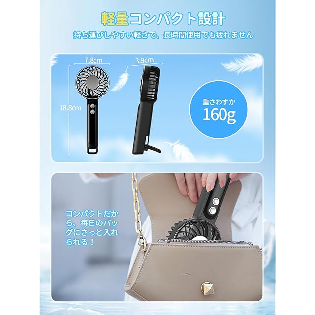 軽量&コンパクト&携帯に便利: 軽量・小型で持ち運びラクラク。付属のカラビナとストラップでバッグやベルトに簡単装着。アウトドア、スポーツ観戦、イベントなど、いつでもどこでも涼しさを持ち歩けます。