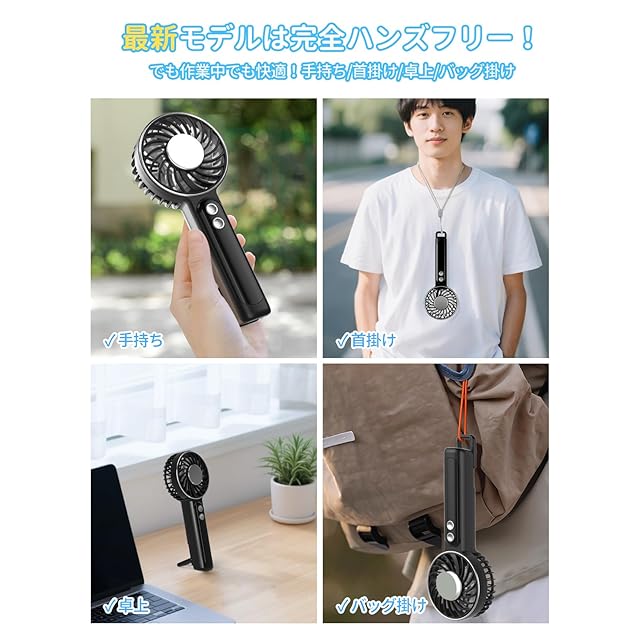 3WAY自由切り替え&いつでも清涼感: 手持ち、首掛け、卓上の3通りの使い方ができる多機能ポータブルファン。通勤・通学時は首掛けでハンズフリー、外出時は手持ちでピンポイント送風、オフィスでは卓上で心地よい風を。シーンに合わせて自在に使え、どこでも快適な清涼感を楽しめます。