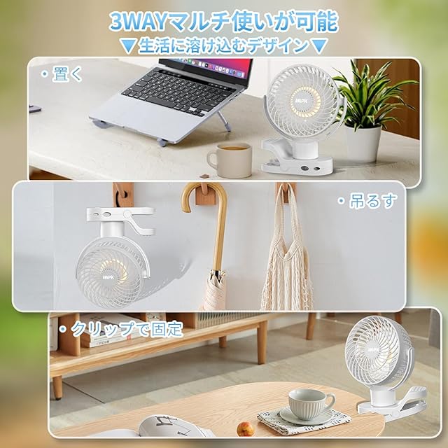 【クリップ付き&安全】クリップのホールド力が強くて、落ちにくいです。クリップで最大直径約7.5cmまで固定できます。それに、クリップの底部にすべり止めがついているので。クランプ式で場所の制限なく、卓上&クリップ&吊下げます。車中,自宅、オフィス,いろんなところで使用可能です。優れた素材のABS樹脂を採用し、細密な防護カバーの安全設計のため、小さい指さえ挿入不可能です。事故・ケガなどを回避することができます。