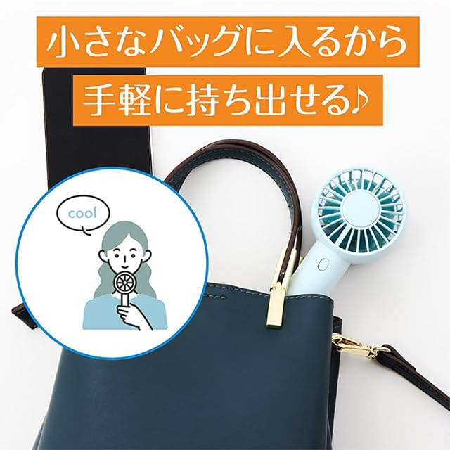 2枚羽の力で強風&静音!どこでも持ち運べるミニハンディファン。外でのイベントやスポーツ観戦、ちょっとした外出でも大活躍のハンディファンです。