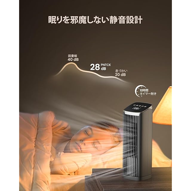 【快適な眠り・70°左右自動首振り・12hタイマー・静音設計】快適な眠りは「温度リズム」から。深い眠りのカギは、就寝時は涼しく・起床時は適温に保つことです。温度が高いと寝つきが悪くなり、温度が低いと体が冷えすぎて倦怠感やだるさにつながることも。一方、朝には体を休息から活動へと切り替えるために、温度を上げる必要があります。ずっと同じ角度で風に当たり続けると体の一部だけが冷えてしまい、それが原因で体調を崩してしまうこともある可能です。70°ワイド首振りが部屋全体に風を届け、エアコンの冷気をムラなく拡散し、電力消費を抑えながら冷房効率UP!12時間のオフタイマーを附き、電源の切り忘れの心配がないだけでなく、就寝時や外出時も安心です。品質の高いモーターを採用することで、動作騒音レベルと送風性能のバランスを取り、最低運転音は僅か28dBで、眠りや集中したい時でも邪魔にならなく、心地よい快適な空間を作ります。