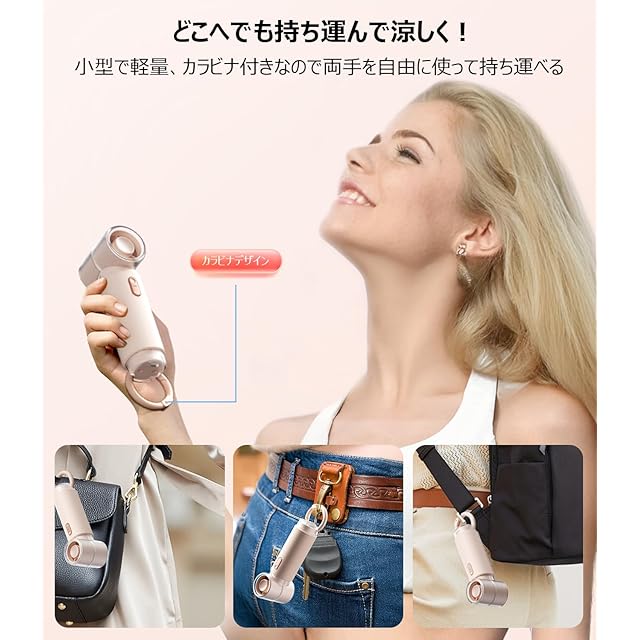 【一台多役・持ち運びに便利】この手持ち扇風機はコンパクトで上品デザインで、さまざまなバッグやポケットに簡単収納可能コンパクトながら高いパフォーマンスを実現します。一方、裏面はハニカムデザインを採用し、ホコリの侵入を効果的にブロックできます。ミニ扇風機のハンドル人間工学に基づいた設計で手触りが心地良い。電源コードに縛られず、ボタン1つだけでオン/オフができ、片手で簡単に操作できます。ミニ扇風機本体はカラビナが付属しています。扇風機を使用しない時、カバンに掛けて両手を解放できます。誤作動防止機能が搭載されていると不意に動き出す心配が少ないので、安心してバッグに入れて持ち運びできます。スポーツ観戦、夏祭り、花火大会、通勤・通学、アウトドア、散歩、通勤、ショッピングなどに最適です。
