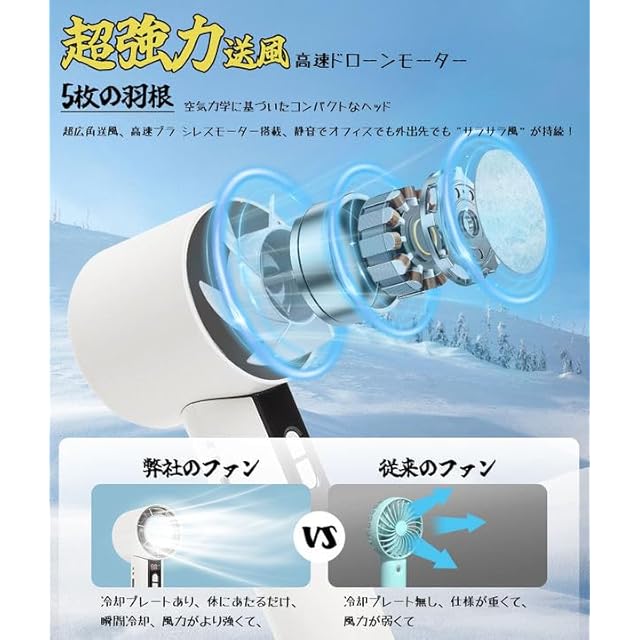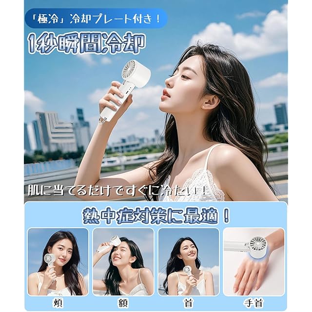 【-20℃瞬間冷却! ハンディファン 冷感プレート搭載で激熱対策】冷感プレートと強力送風の組み合わせで、瞬時に肌を-20℃級の涼しさに!熱中症予防に最適な夏の必需品。炎天下や運動シーンでも、ひんやり快適な風を体感できます。