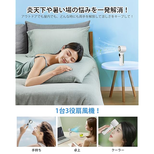 【2024新設計 送風+冷却・瞬間冷却】暑い夏を快適に過ごすための定番、ハンディファンです!最新冷却プレートとファンを備えた設計に採用して、暑い夏でも涼しい冷却プレートと心地よい微風が体感温度を数秒で約10℃まで冷却されます。熱中症対策にも役に立ちます。ボタンを長押しすると、ファンモードに加えて冷却モードを追加します。外出や携帯に最適で、熱中症予防にも効果的です。